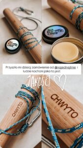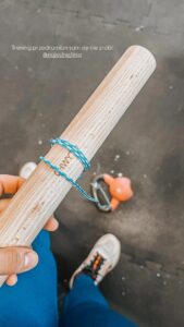 To wałek z solidnego bukowego drewna. Dołączony repsznur i karabinek pozwalają na łatwe przymocowanie ciężaru (np. talerza lub butelki z wodą), dzięki czemu możesz trenować rotację nadgarstka i stabilizację całego przedramienia.