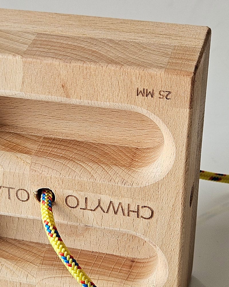 Dzięki temu pętla z repsznura, na której wisi ciężar, może być krótsza i jednocześnie nie ociera się o deskę podczas ćwiczeń. Co najważniejsze: środowisko wspinaczkowe, które testowało pierwszą serię, nie zgłosiło żadnych poprawek. To najlepsze potwierdzenie, że projekt działa dokładnie tak, jak powinien.