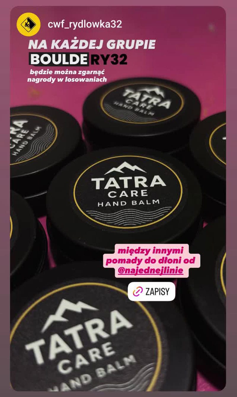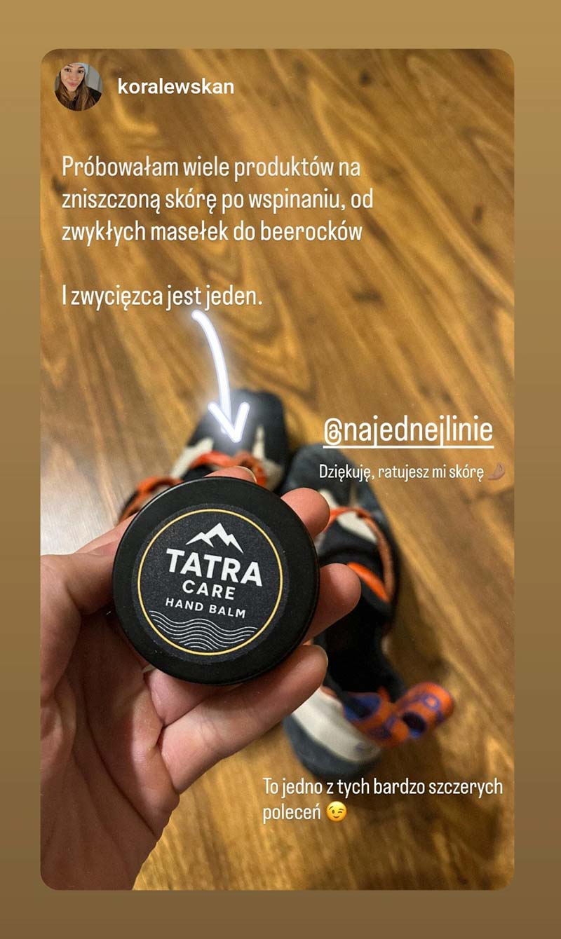 Tatra Care łączy moc natury z praktycznym doświadczeniem wspinacza — chroni dłonie, odżywia je i pomaga szybciej wracać do skały.